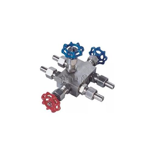 QFF3型三阀组由高、低压阀及平衡阀组成成为一体,与差压变送器配套适用。该针型阀的作用是将差压变送器正、负测量室与引压点导通或断开、或将正、负测量室断开和导通,引压、输压点直接与钢管连接,连接采用焊接。