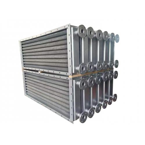1、钢制换热器主要由顺空气流向的三排叉排排列螺旋翅片管束组成。其翅片管是把冷轧钢带用机械绕片的方法,绕在无缝钢管上,然后进行表面镀锌或喷高温银粉漆处理,散热管与翅片接触面广而紧,传热性能良好,稳定并且耐腐蚀,外形美观,便于安装,方便管理,经久耐磨。